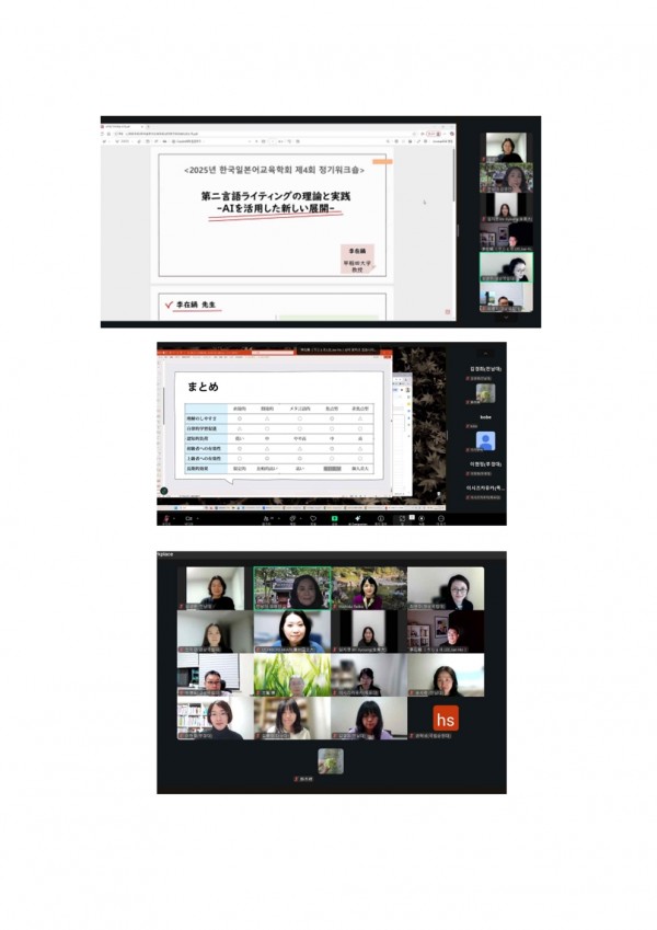 한국일본어교육학회 2025년도 제4회 정기 워크숍 성료 페이지 정보 작성자 관리자 작성일25-11-12 22:00 조회294회 댓글0건 다음글 목록 본문 회원 여러분의 성원에 힘입어 2025년도 제4회 정기 워크숍을 성료하였습니다. 진심으로 감사드립니다. 댓글목록 등록된 댓글이 없습니다. 다음글 목록